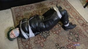 The Bound Town police dept been looking for master burglar Dakkota. She been tying up guys and girls all over the city and then sent in 2 of the best Swat Team Members The Chief and Officer Blair Blouson they saw Dakkota sneak into a house and they went in after her. The Chief decides to have Blair and him split up Blair leaves the room and Dakkot sneaks in and starts to wrestle with him and chokes him out. We come back he tied in the chair and she tries to fool blair by adding a tight tape gag wrapped around his head and adding a hood mask to hide his identity. Blair comes back in a gets the same fate as the chief except she is stripped down to her bra panties and pantyhose can they escape?